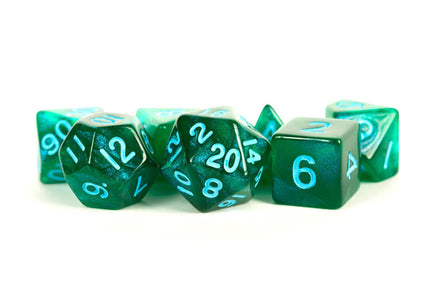 FanRoll Acrylic 16mm Polyhedral Dice Set (Stardust Green w/ Blue Numbers)
