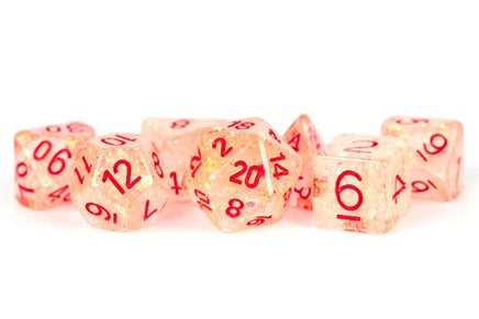 Flash dice are infused with a unique blend of flashy flakes that illuminate when they hit the light. It’s hard to beat the value in our resin dice sets. Beautiful and affordable, these are great Critical Reinforcers to our metal dice. Each 16mm polyhedral set comes with 7 dice (d4, d6, d8, d10, d10 (00-90), d12, and d20).