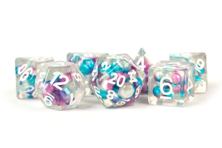 This set is infused with pearls! It’s hard to beat the value in our resin dice sets. Beautiful and affordable, these are great Critical Reinforcers to our metal dice. Each 16mm polyhedral set comes with 7 dice (d4, d6, d8, d10, d10 (00-90), d12, and d20).