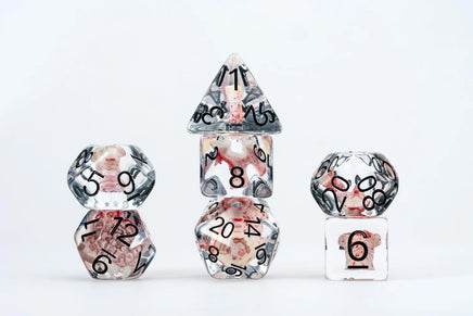Calling all Walking Dead enthusiasts and collectors! Introducing the ultimate inclusion dice set with dismembered zombie parts to enhance your gaming sessions! This gruesome set features a detailed zombie head in the D20 and guts, arms and legs in the other dice!
