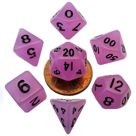 FanRoll Glow in the Dark Purple Mini Polyhedral Dice Set