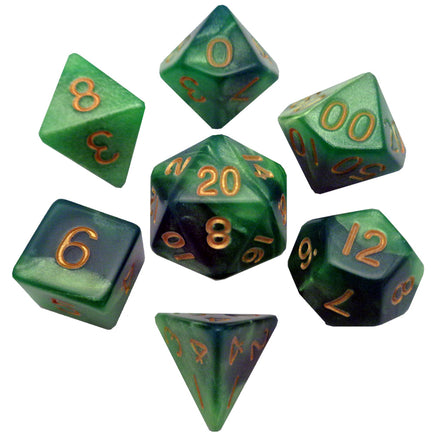FanRoll Green/Light Green with Gold Numbers Mini 10mm Polyhedral Dice Set