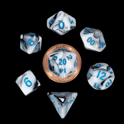 FanRoll Marble with Blue Numbers Mini 10mm Polyhedral Dice Set