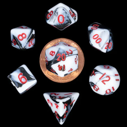 FanRoll Marble with Red Numbers Mini 10mm Polyhedral Dice Set