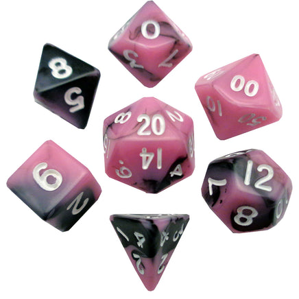 FanRoll Pink/Black with White Numbers Mini 10mm Polyhedral Dice Set