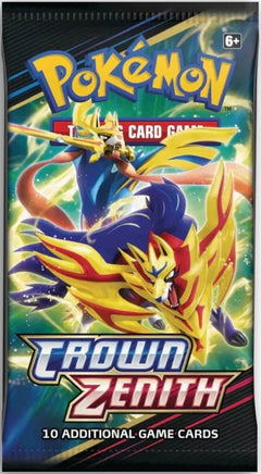 The Legendary heroes Zacian and Zamazenta shine with new VSTAR Powers, and an all-star assembly of Pokémon and Trainers arrive to celebrate the era of Pokémon V! Discover dazzling special illustrations in the Galarian Gallery, and wield the strength of rare and powerful Pokémon. Many more Pokémon have their own tales to tell in battle as the Sword & Shield Series reaches its towering peak in the TCG: Crown Zenith expansion!