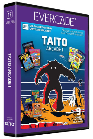 9 Taito arcade classics come to Evercade! This Evercade cartridge includes the classic platformer Bubble Bobble and Space Invaders, one of the most influential arcade games of all time. Also includes the platformer action of Chack'n Pop and Don Doko Don, the environmentally conscious beat 'em up action of Growl, high-speed ninja action in the Legend of Kage, aquatic acrobatics in Pirate Pete, maze chase fun in Raimais and the hectic target shooting of Colony 7.