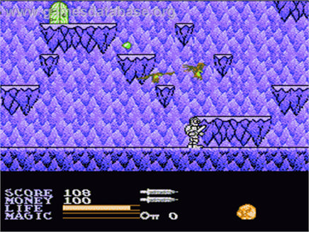 The land of Sindarin summons you, Kuros. This time, the evil Wizard Malkil has unleashed his fury in the form of the four elementals: Earth, Wind, Water and Fire. In order to conquer them and defeat the Wizard, you must reconstruct the IronSword, the only weapon Malkil fears. You'll journey through dark caverns and fiery terrain, discovering hidden treasures and magic spells as you go. Seek help from the Animal Kings, but beware of slimy spitters and snapping skulls. Good luck, Kuros. You're about to face what no warrior has faced before!