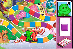 "Candy Land" has participants try to navigate the location stated in the title to meet King Kandy. Two to four players can participate. Each space either is of a solid color, includes an icon corresponding to a location, can transport the player through shortcuts, or can hold him/her back from finishing the game. Movement is done by a deck of cards; the card drawn from the top by a player directs him/her to the next space to transport to. A solid-colored square card tells the player to move to the next space with that color; cards can have two squares, which have the player move to the second space of the same color in his/her path. Location cards have the player transport straight to the space corresponding to those cards. The first to make it to Candy Castle, where King Kandy is located, wins.