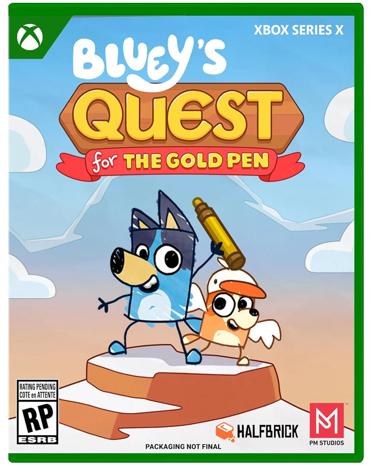 Experience the world of Bluey as you never have before in this story-driven adventure game that only Bluey’s imagination can make possible! Join Bluey on her epic new quest across hand-drawn imaginary lands to retrieve the Gold Pen. Explore exciting worlds, complete fun challenges and trifficult puzzles, all as you embark on Bluey's Quest for The Gold Pen. A world-first collaboration with the original Bluey creator – pre-order Bluey's Quest for The Gold Pen now!