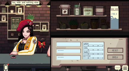 • Branching story lines where the decisions do not come from the dialogue options you choose, but through how you treat and serve the customers of your café.