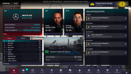 Career – Become the Best: Write a new chapter in a bold new era for Formula 1. Choose your F1 team and guide them to glory throughout the official 2022 races by beginning your journey at the back of the grid or taking your place in pole position – in F1 Manager, the choice is yours. Your task is to impress the board by hitting your season targets and long-term goals, securing your team’s success for years to come.