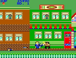 A bunch of seedy punks - complete with mohawks - try to steal your girl. It's a new variation on the old "Boy loses Girl" theme. Only it's more like "Boy loses life, if he doesn't get Girl back." Battle knife throwers, ferocious bulldogs, flying bottles, even the gang leader - whose name happens to be Mohikan. If it all seems hopelessly overwhelming, take heart. You're a high-ranking kung fu master. So you do have incredible martial arts skills in your favor. But then again, you don't have your girl. The punks do.