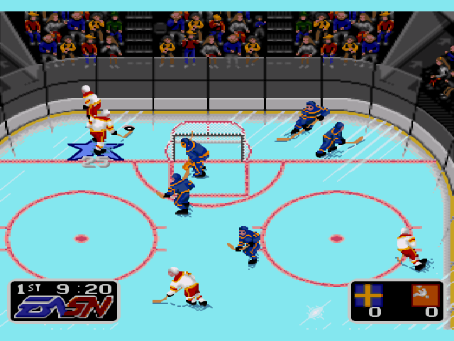 The game includes all of the 24 NHL teams and over 500 players, rated in over 15 skill categories. You can play the complete league season or create your own brand new league with up to 24 human participants. All the rough and tumble action of the sport is recreated from a top-down viewpoint. A full replay system is included. Digitized speech and organ music aim to bring authentic NHL arenas to life.