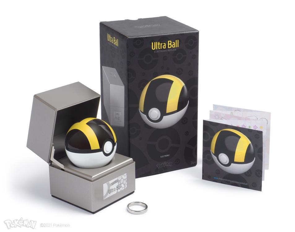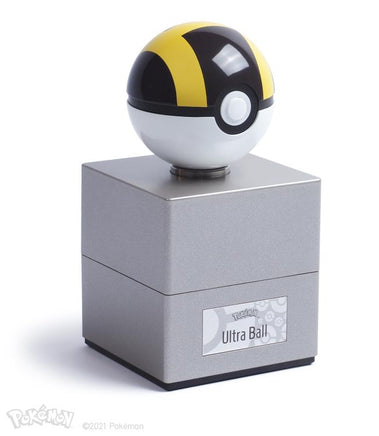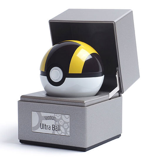 The Wand Company's Die-Cast Poke Ball Replicas are the first officially-licensed premium collectible replica for Pokémon fans. Equipped with proximity-sensing technology, the Friend Ball's button glows when it senses motion; pressing the button changes the light color or starts a Pokémon-catching illumination sequence. Ideal for collectors, the replica comes with a presentation case - authenticated by a uniquely-numbered hologram - and a polished stainless steel ring so that you can display your Ultra Ball however you want. Enjoy multi-colored lights glowing under the Ultra Ball when you open the case; control them by touching the case's metal plaque.