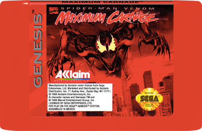 Only one maniacal madman can force Spider-Man to unite with his sinister, arch-nemesis Venom: CARNAGE! His deadly rampage is tearing New York City apart! Only wild web-slinging maneuvers, crushing combat moves and Super Hero allies can save the city from total obliteration! It's maximum mayhem! It's Maximum Carnage! Paint the town red!